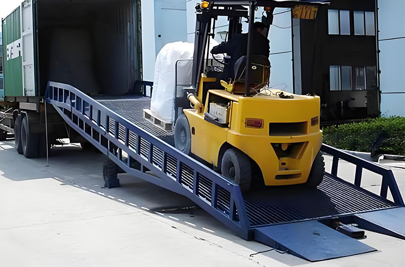 移動登車橋是用于卡車、集裝箱裝卸貨時,叉車從地面行駛至車廂的過渡橋。移動登車橋的可以移動性,可以滿足在不同的場地進行裝卸貨作業。